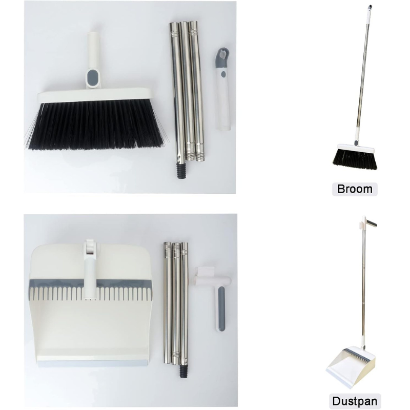 O conjunto de vassoura e pá de lixo para exterior é leve e adequado para limpar grandes áreas. As cerdas macias funcionam bem numa variedade de superfícies de pavimento sem deixar riscos. Este conjunto de vassoura e pá de lixo com cabo longo é suficientemente durável para limpar tanto no interior como no exterior.