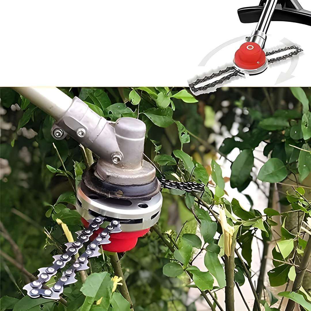 Com a Cabeça de Corte com Corrente, transforme a sua roçadora numa máquina imbatível — corta relva, mato e ramos com rapidez e sem esforço!