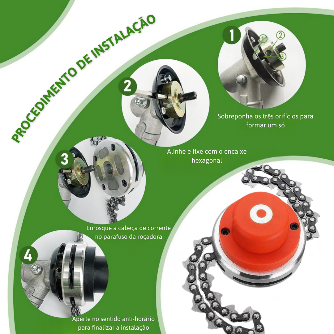 Cabeça de corte em aço com corrente – Corte limpo, durabilidade e segurança total