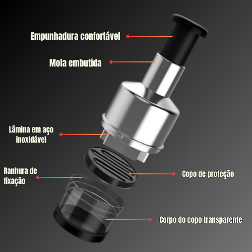 Basta pressionar o picador de vegetais para picar rapidamente alho e cebola em segundos, sem mais risco de se ferir ao tocar nas lâminas.