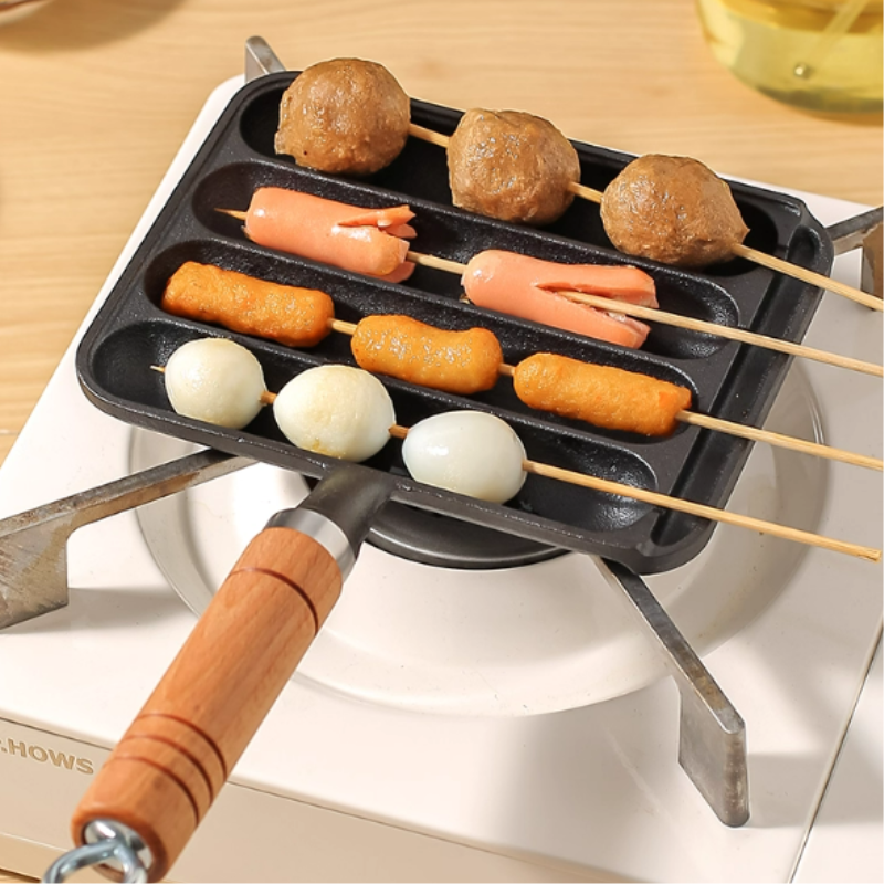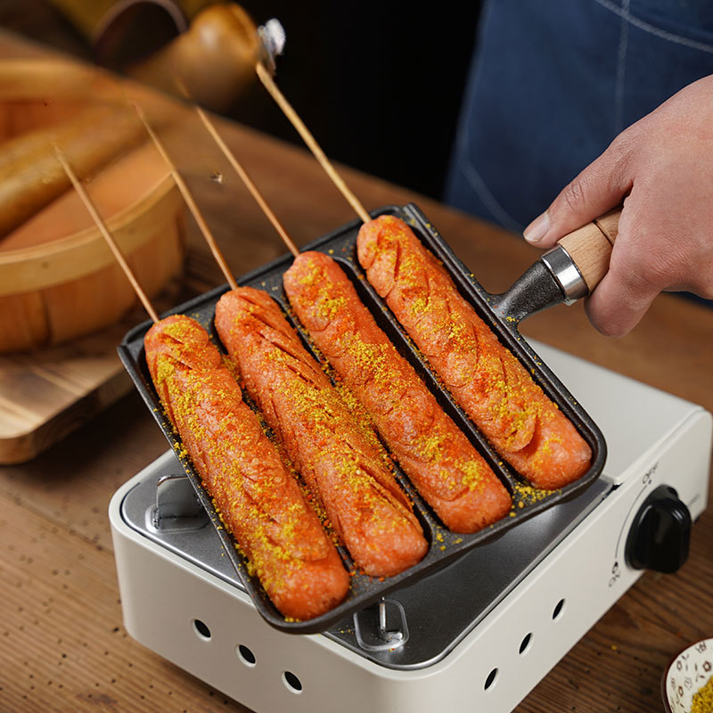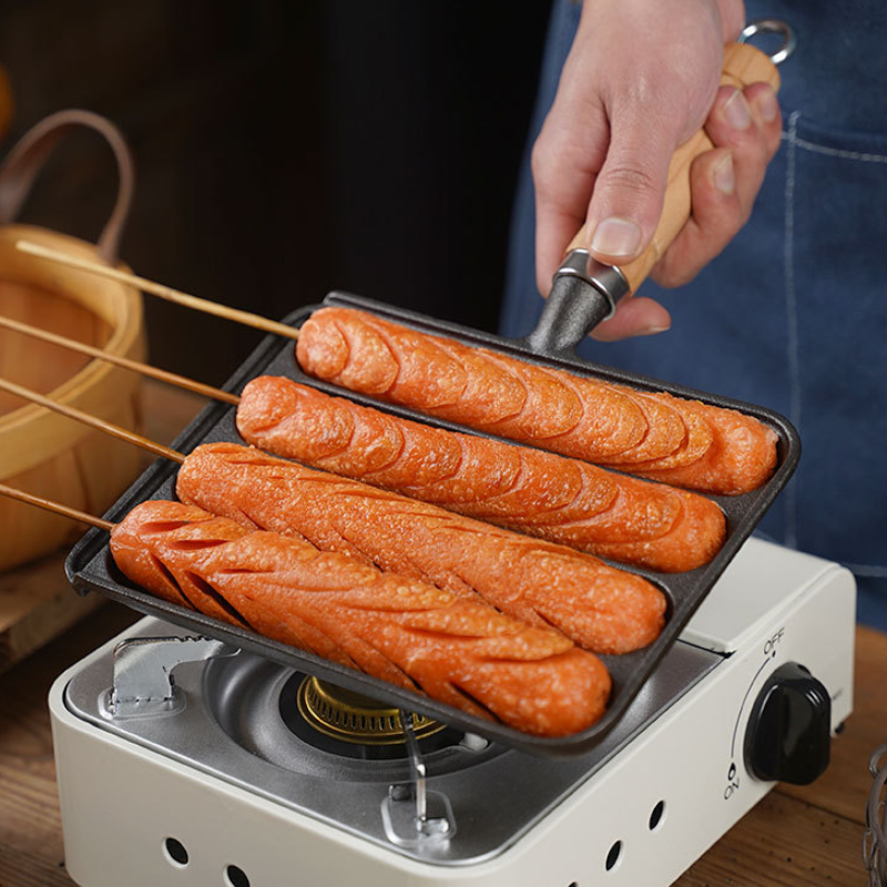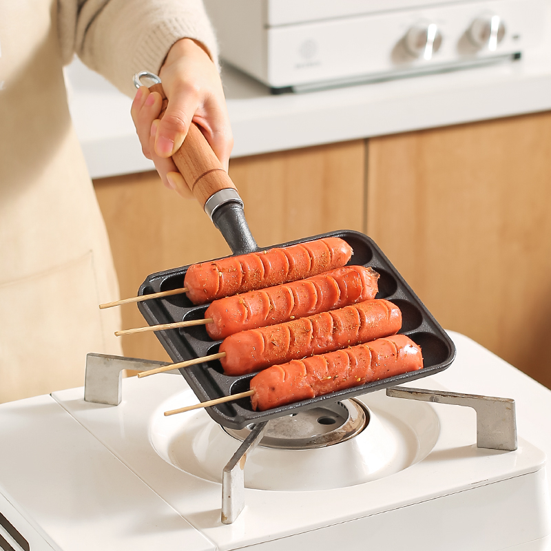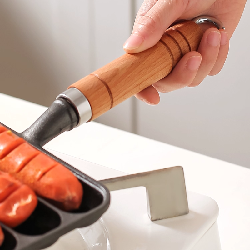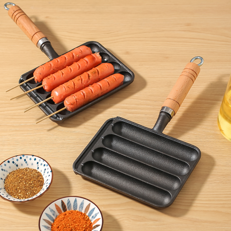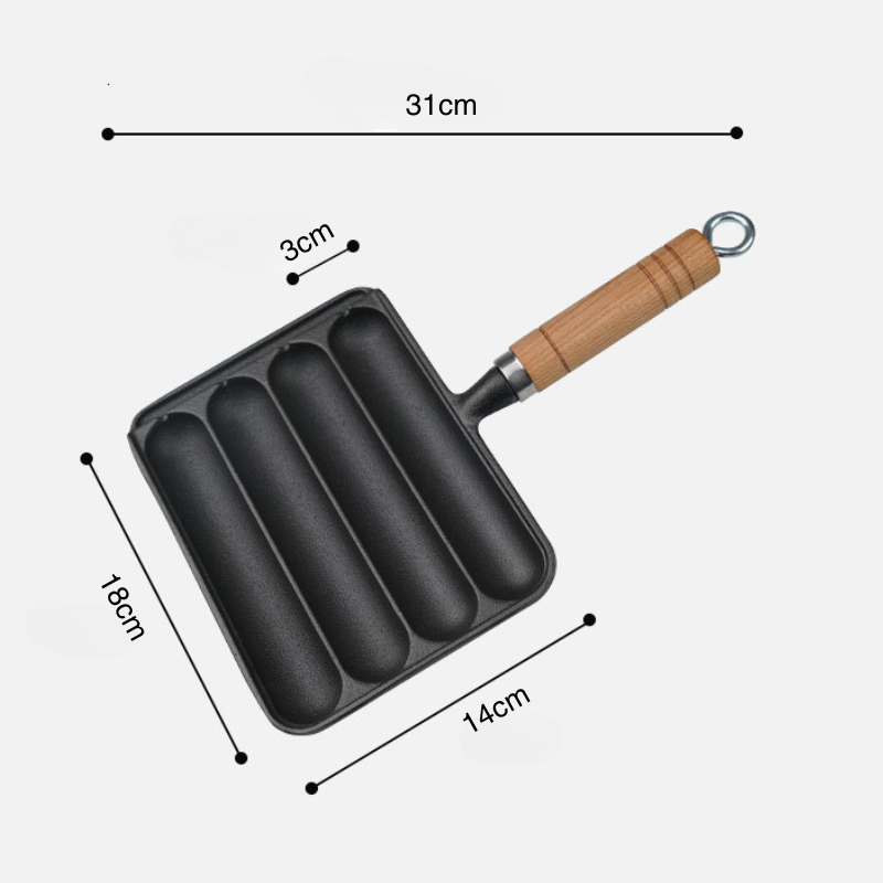 A panela pré-temperada possui várias cavidades, permitindo cozinhar mais salsichas ao mesmo tempo, tornando o preparo e o serviço muito mais práticos.